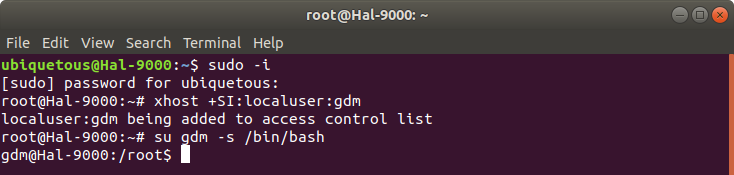 Finally switch to user gdm in this terminal via command:
