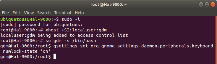 Get gdm user privilege in a terminal window.