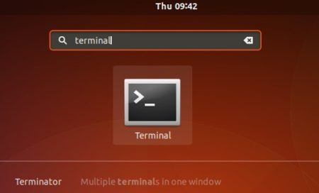Open terminal by either pressing Ctrl+Alt+T or searching for ‘Terminal’ from software launcher.